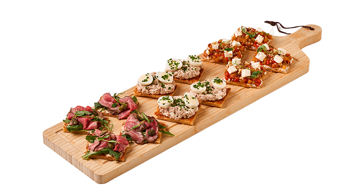 Брускетты на круассане "Печеный перец", "Тунец" и "Ростбиф"
