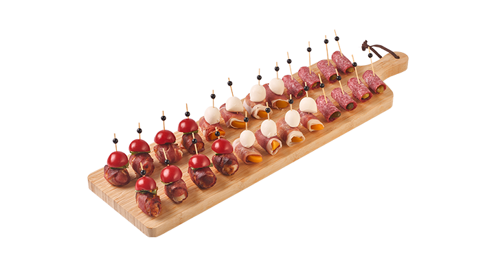Канапе "Бекон", "Хамон и персик", "Салями"