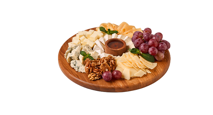 Состав: Камамбер, пармезан, дорблю, маасдам, сулугуни, виноград, грецкий орех, мед