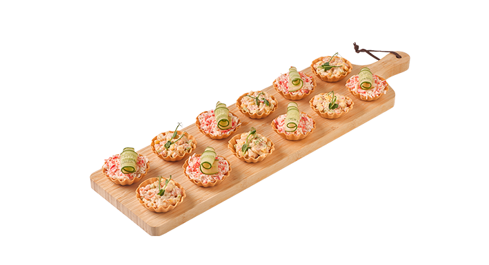 - тарталетка, начинка "крабовый" (крабовые палочки, белок куриный,масло трюфель, соль), огурцы - 6 шт.
